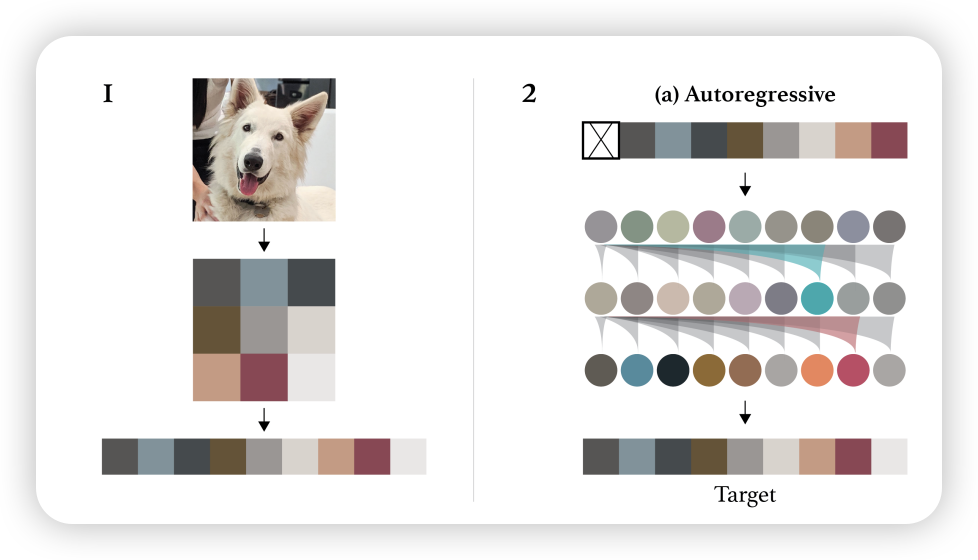 2) 把 16×16 patch 下采样成 4×4,再对每个小格预测 3-bit color(512 分类,16 个并行预测)