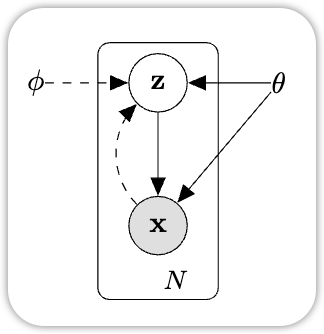 | Recognition Model / Encoder Network | 输出 \(z\) 的分布函数 \(p_\phi(z \| x)\) |