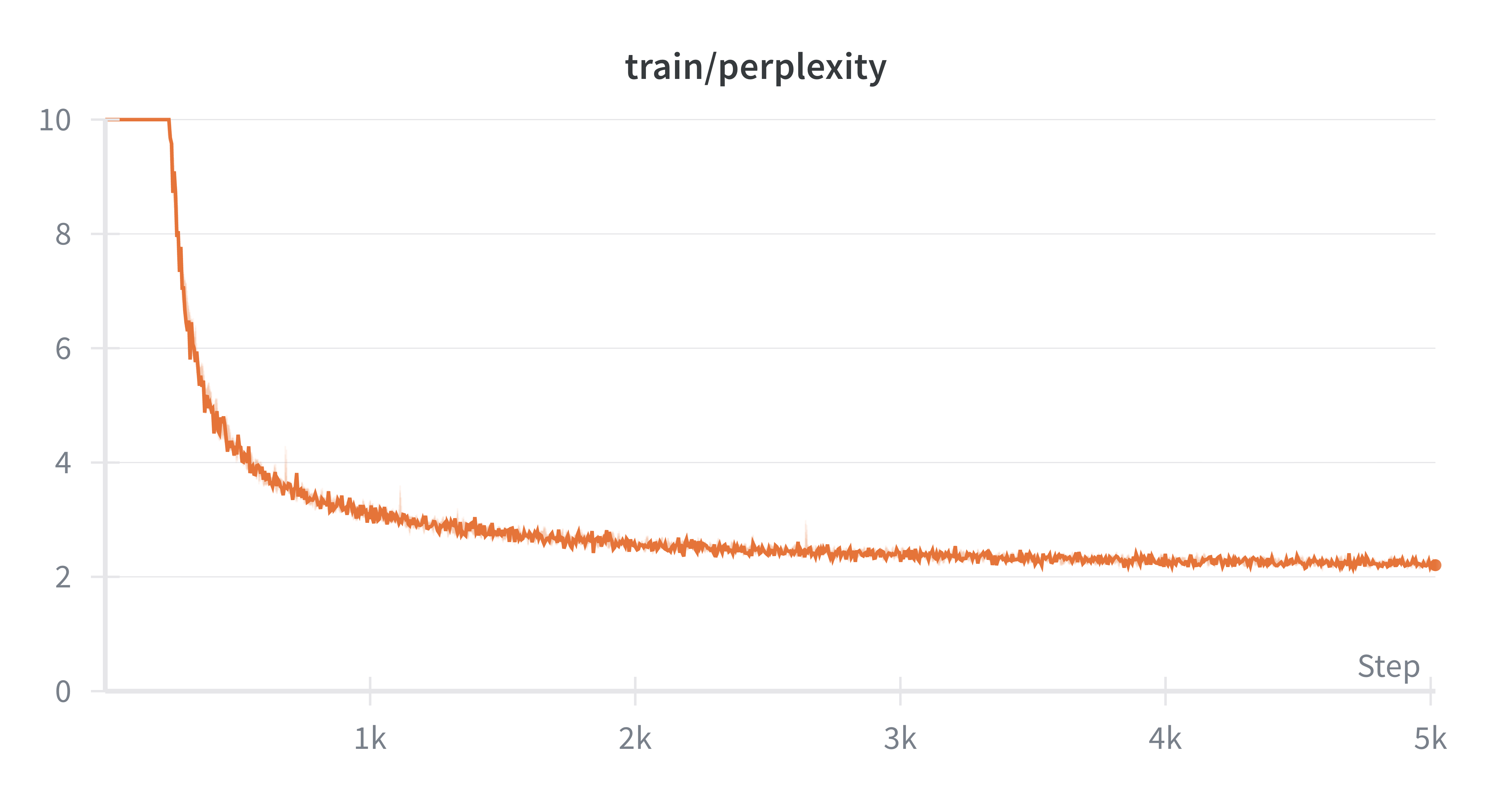 我们可以看到,在完成了10K步的训练之后,模型的训练损失和评估损失都有了明显的下降,困惑度(Perplexity)也有了显著的提升。这表明模型已经学会了一些语言模式,能够更好地预测下一个 token。最后的结果: