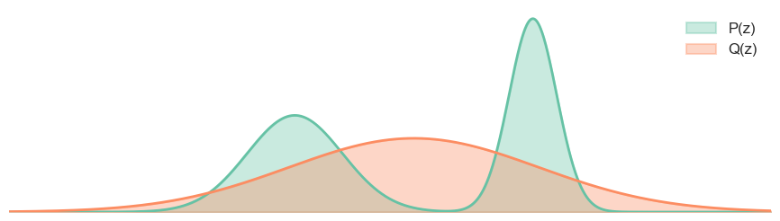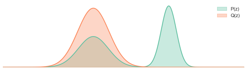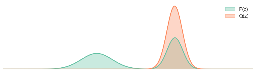 Here we assume that \(P\) is the true distribution, and \(Q\) is the model distribution that we are using to approximate \(P\).