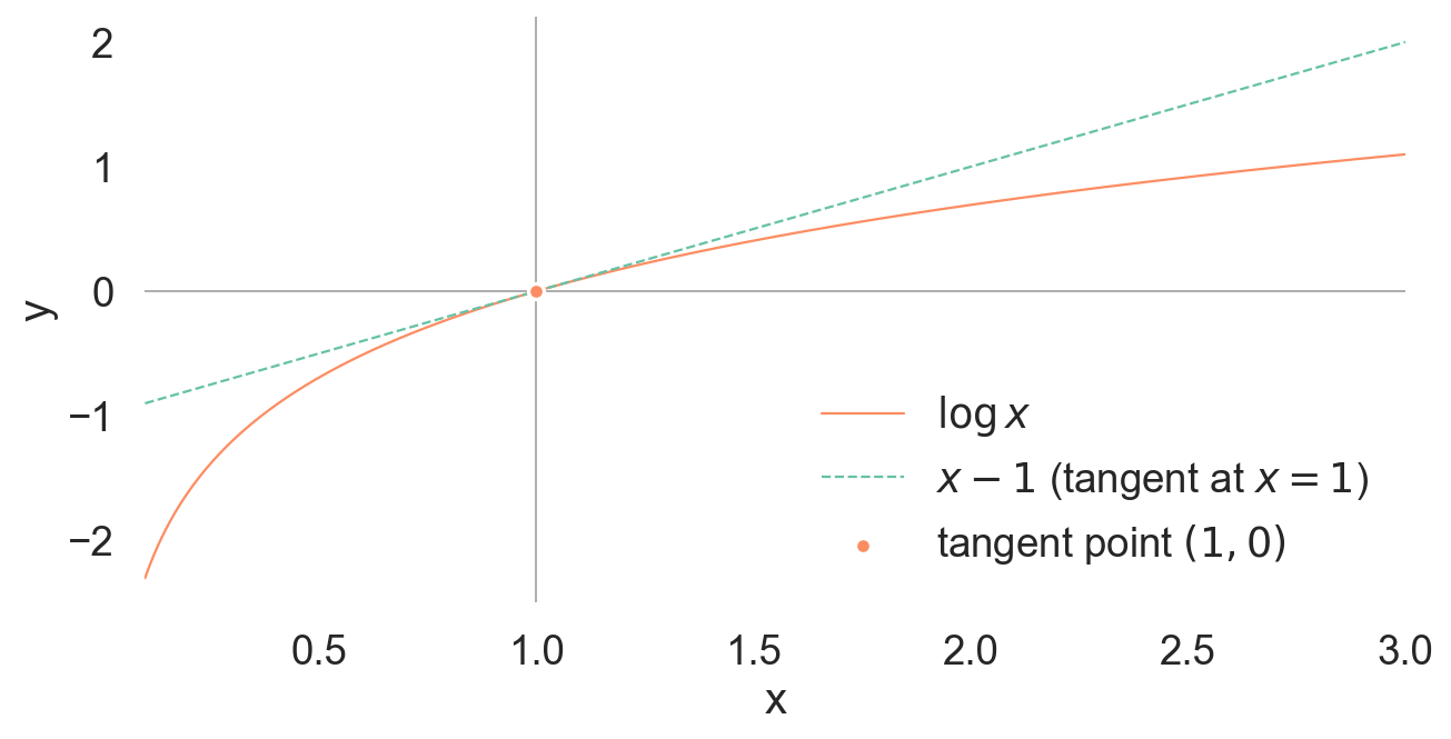 - Reverse KL Divergence: \(f(t) = -\log t\)
