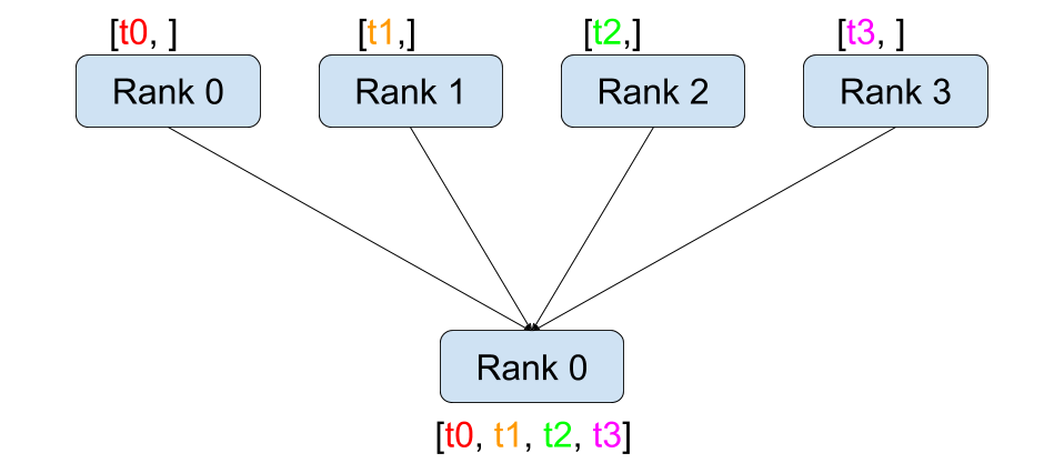 Gather(Figure 2 (c)): This operation collects data from multiple processes and combines it into a single process. It is useful for aggregating results from multiple GPUs.