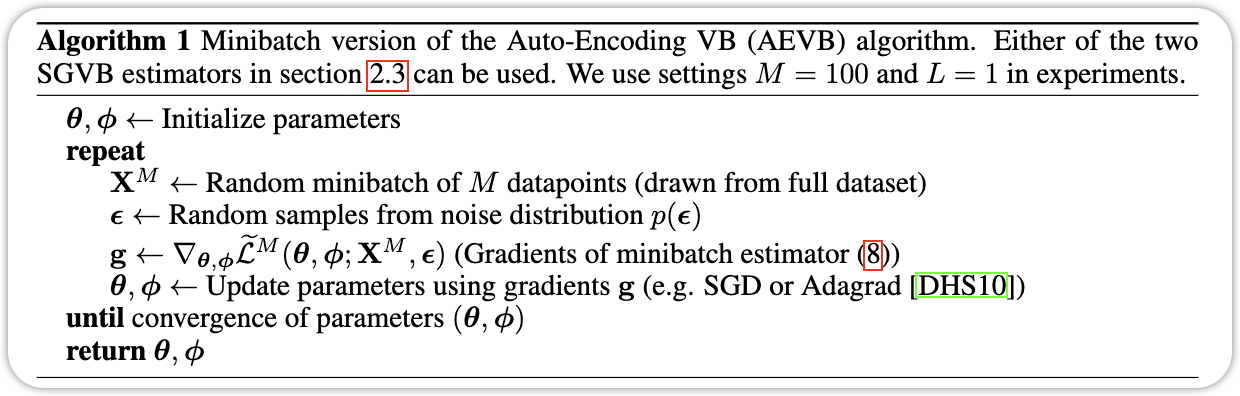 将上面的几个结合起来,我们就得到的了 Auto-Encoding VB Algorithm。