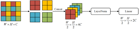 However, unlike other patch merger such as the one in Swin Transformer (Liu et al. 2021), the Patch Merger in Qwen3-VL is implemented as a linear layer that projects the concatenated patch embeddings into a lower-dimensional space. The adjcant patch embeddings are processed during the pre-processing step, and the Patch Merger layer simply reduces the dimensionality of the concatenated embeddings. Wewill see more